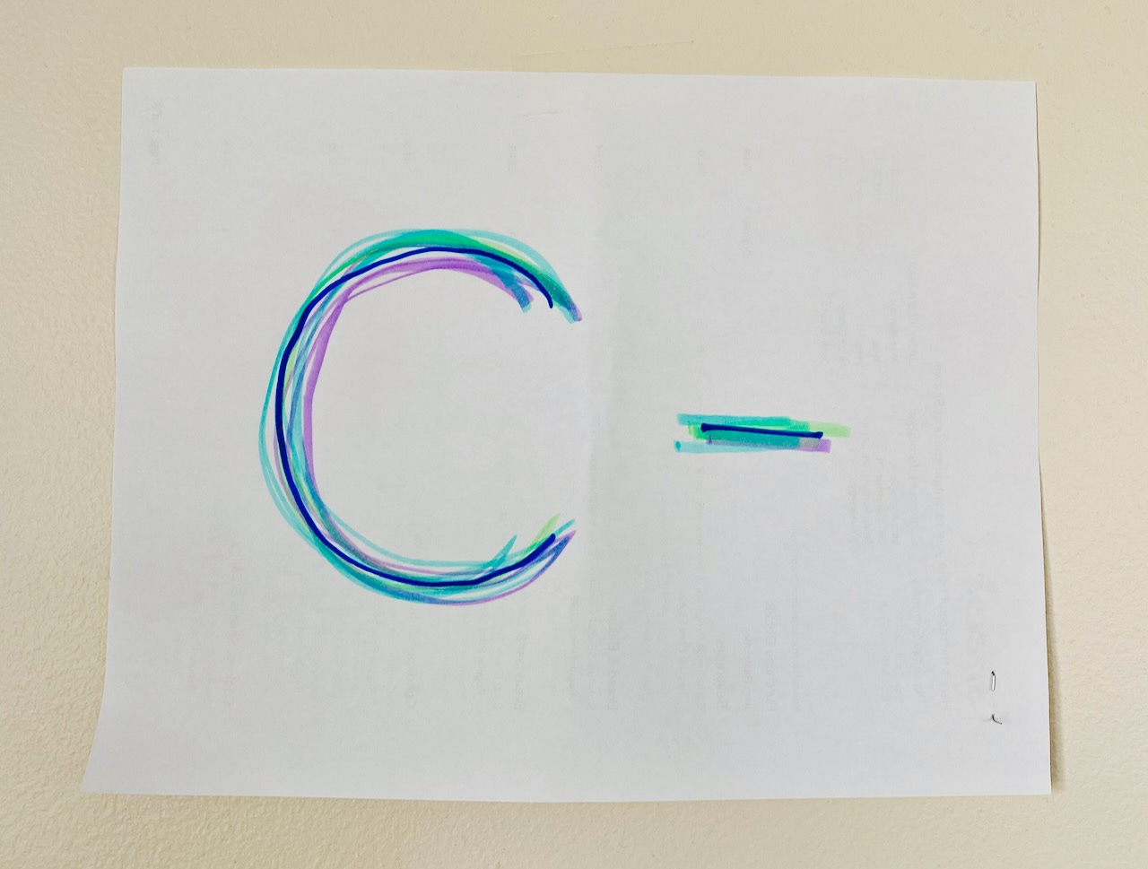 I’ve been preaching the gospel of C- to loved ones. After contemplating the idea for a few minutes, one brilliant and high-achieving friend said, slowly, with astonishment and a little bit of heartbreak in her voice, “A C- student is…still lovable.”